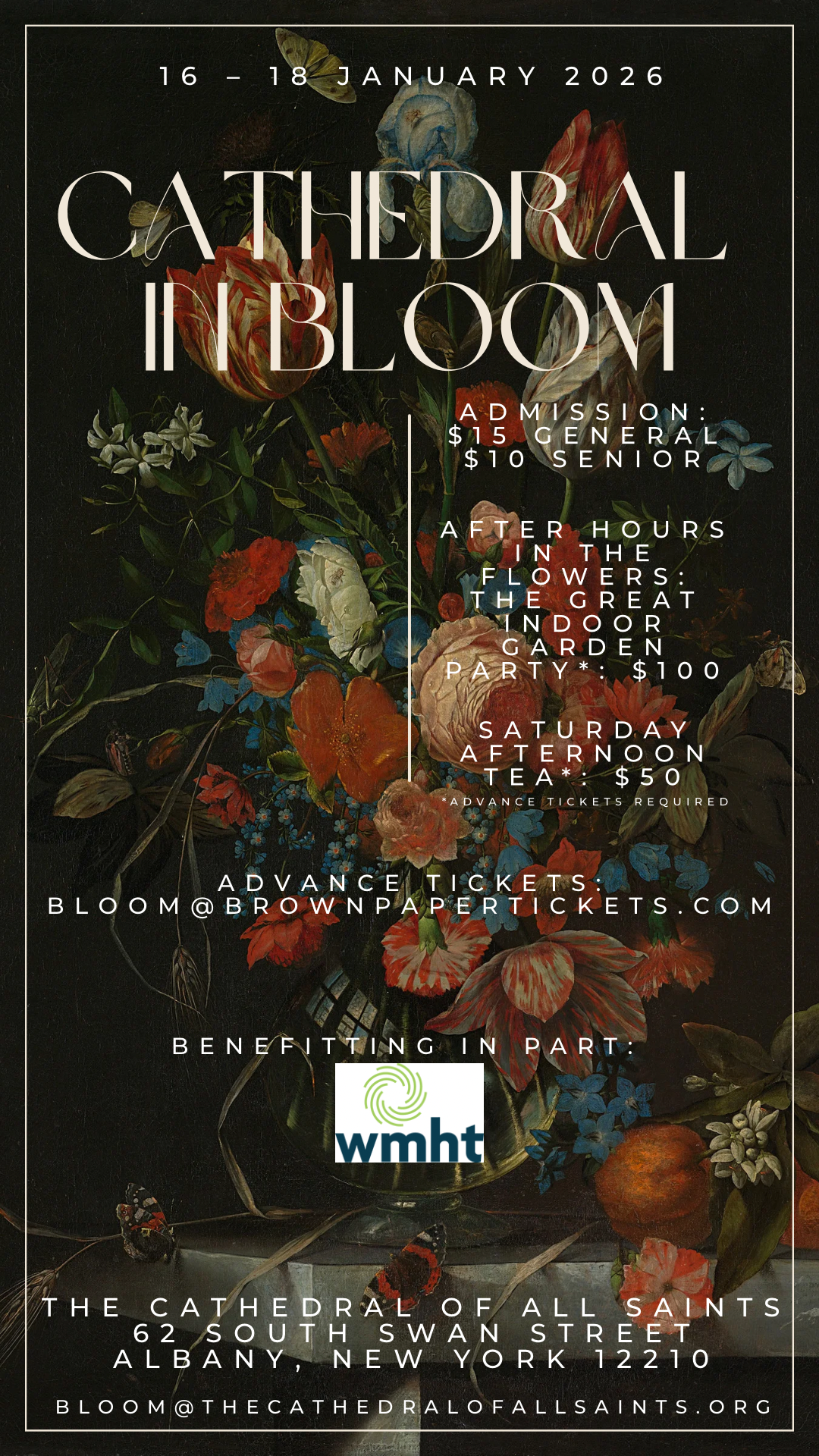 Enjoy the glory of the architecture of The Cathedral of All Saints, combined with the talent of floral artists in the Capital Region and beyond. Regardless of the weather outside, it will be Spring inside the Cathedral!